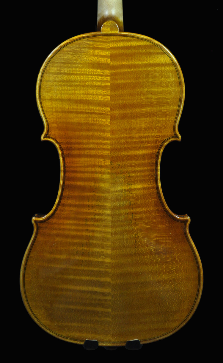 •European spruce and maple with desired grain and flame, naturally seasoned over 12 yrs. Density plate matching and pairing for optimal resonance.