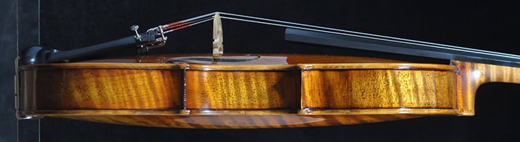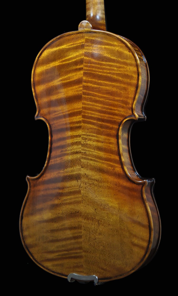 A superior “Messiah” strad copy with resonant and OPEN tone, fast response and sonorous projection. Professionally set up with high end playability, superior power and projection that will surprise you at this price range. Ringing and penetrating higher register that projects well and not overly bright, open and pleasant to hear. Full and rounded G string with a deep vibrant voice. A projective sounding strad that built with seriousness, our most affordable instrument that represents super value for violin players.