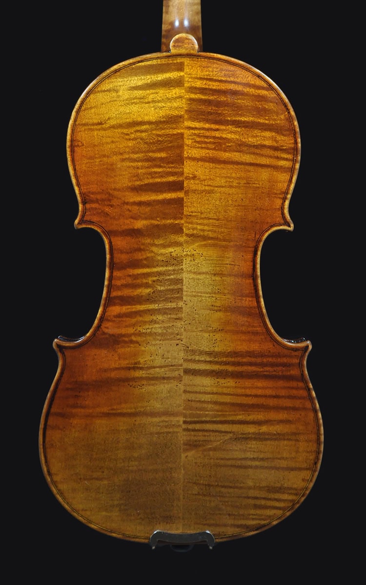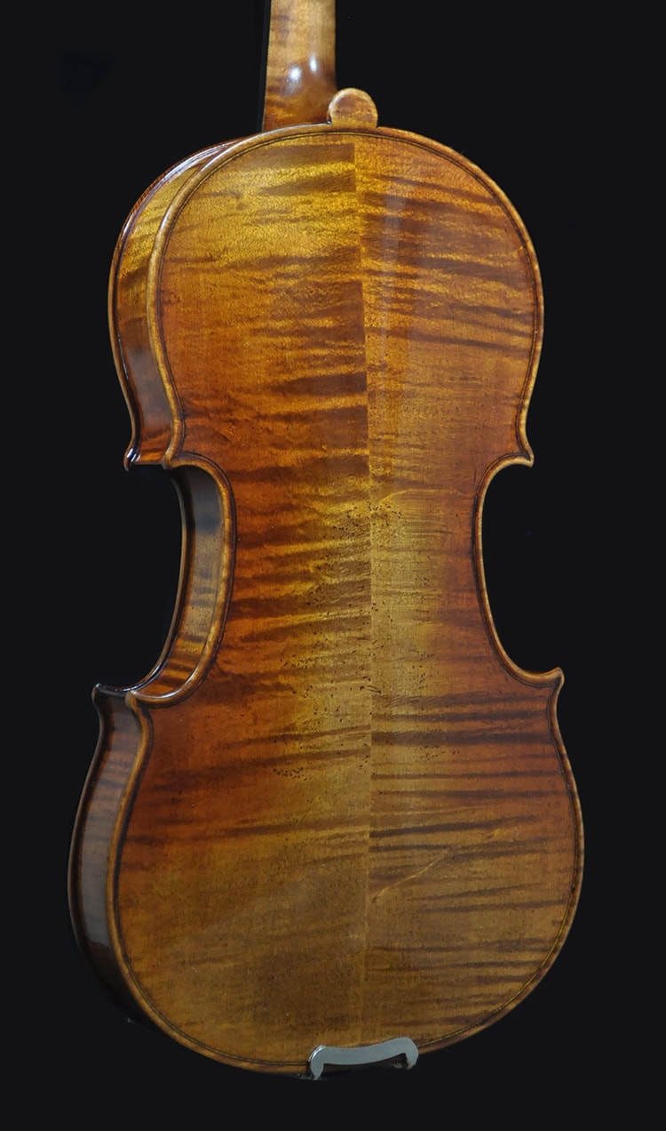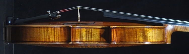 A superior “Messiah” strad copy with resonant and OPEN tone, fast response and sonorous projection. Professionally set up with high end playability, superior power and projection that will surprise you at this price range. Ringing and penetrating higher register that projects well and not overly bright, open and pleasant to hear. Full and rounded G string with a deep vibrant voice. A projective sounding strad that built with seriousness, our most affordable instrument that represents super value for violin players.