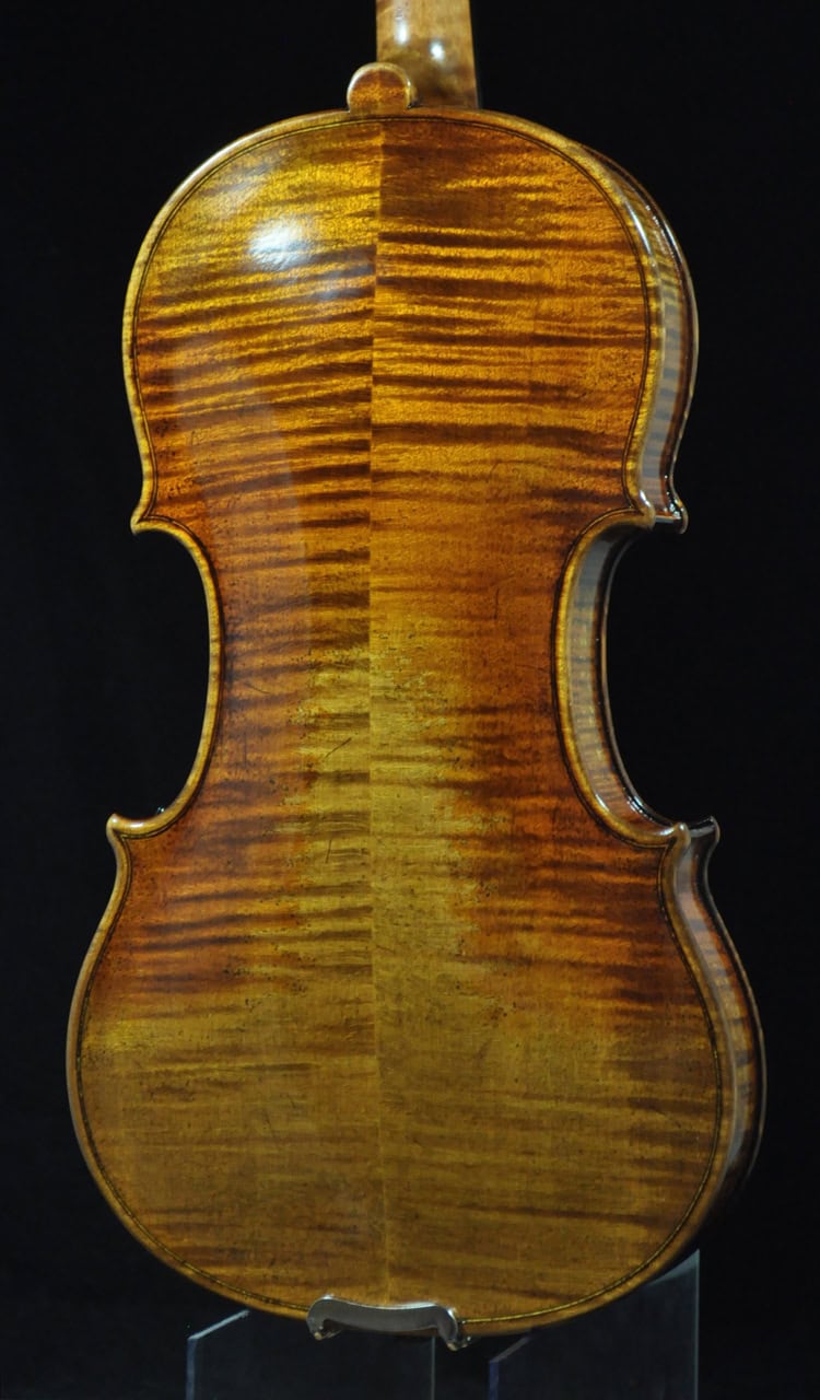 • Classic Guarneri antique golden brown varnish, French polished.