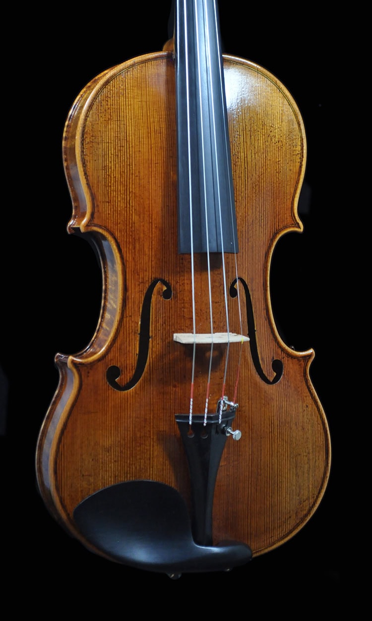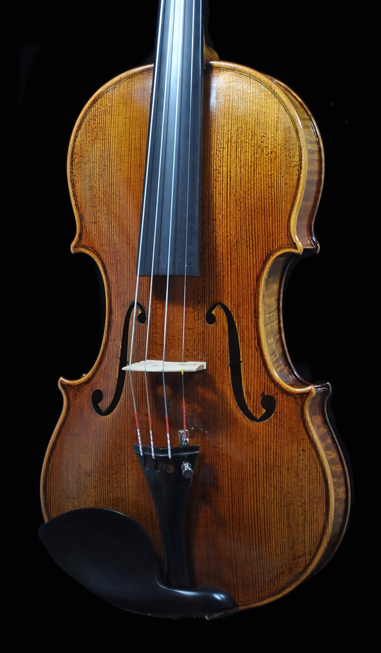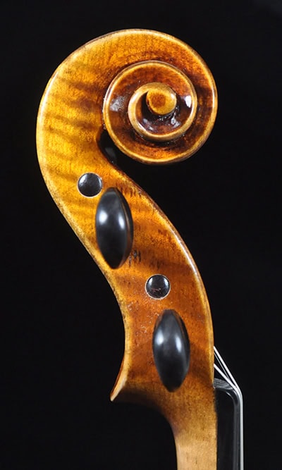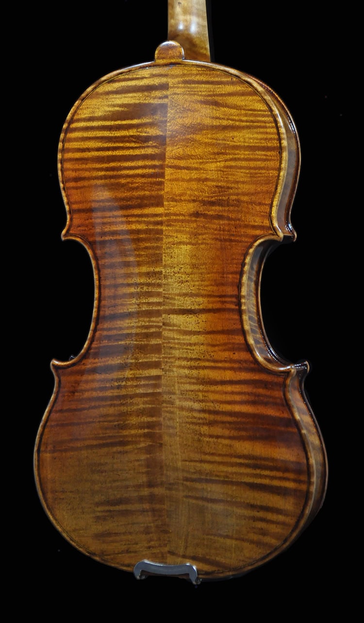 • Classic Guarneri antique golden brown varnish, French polished.