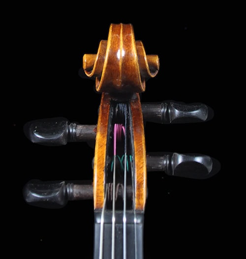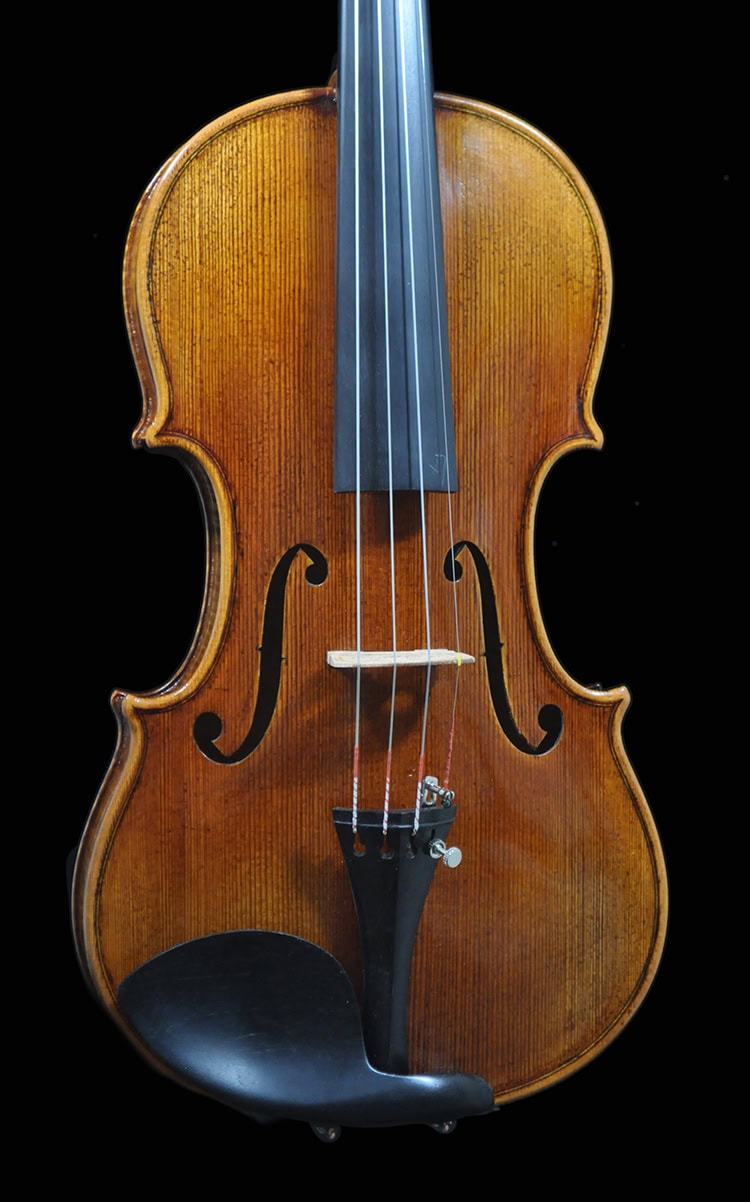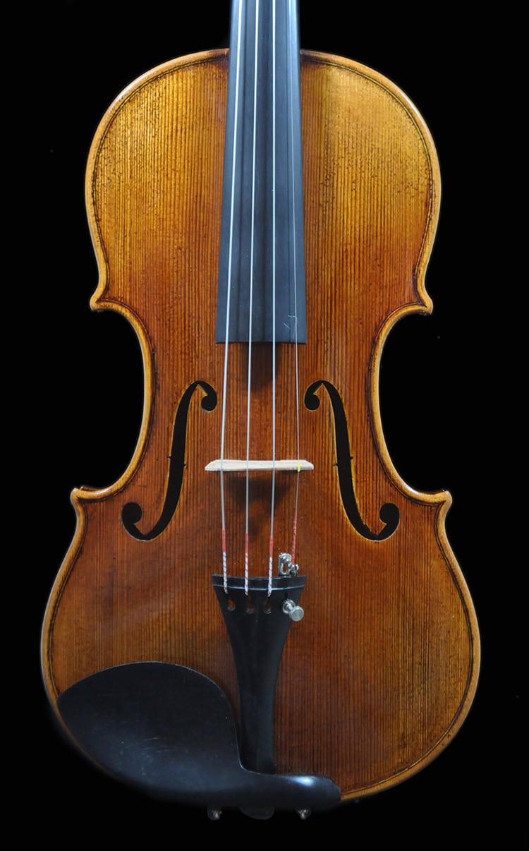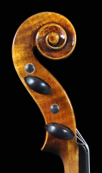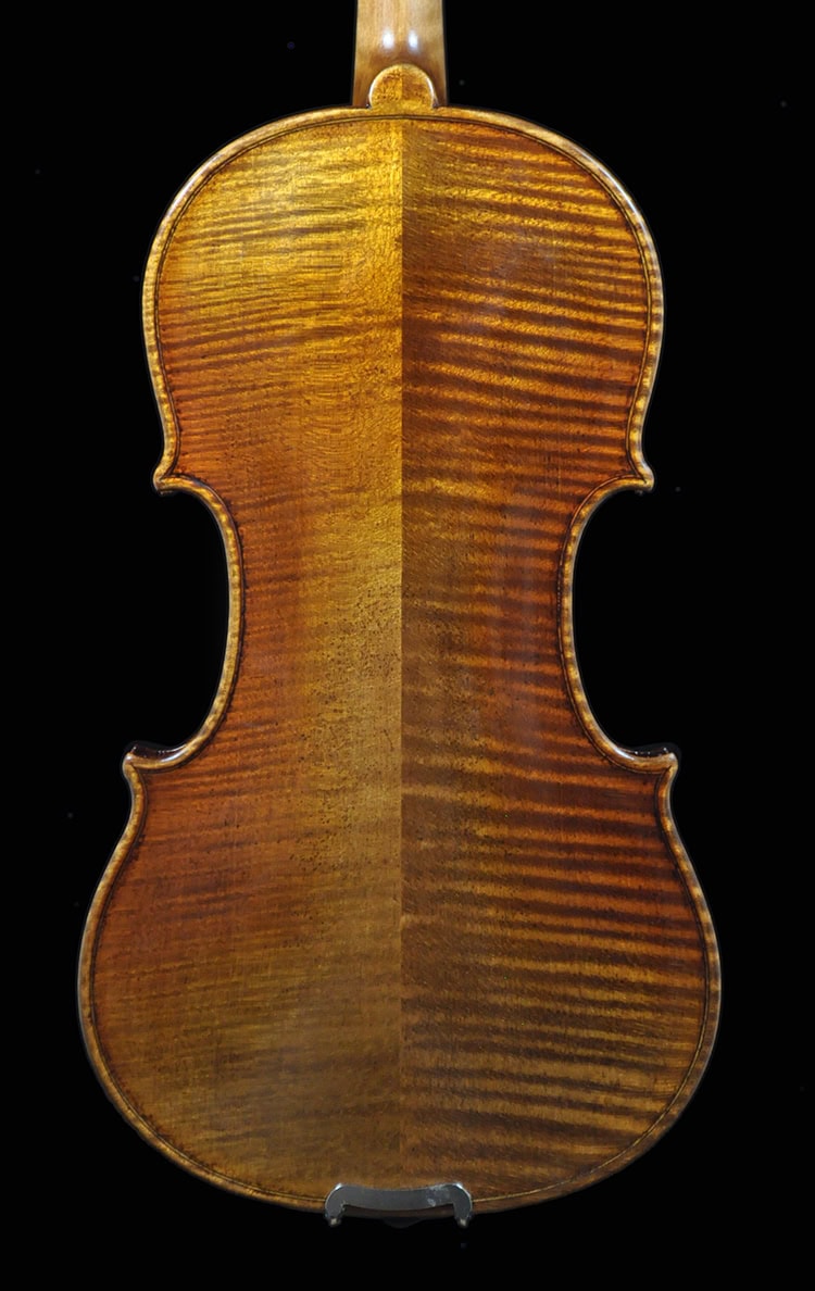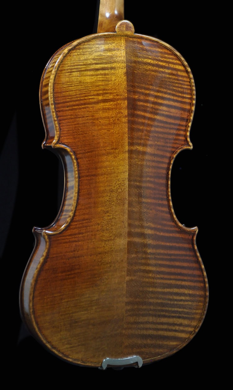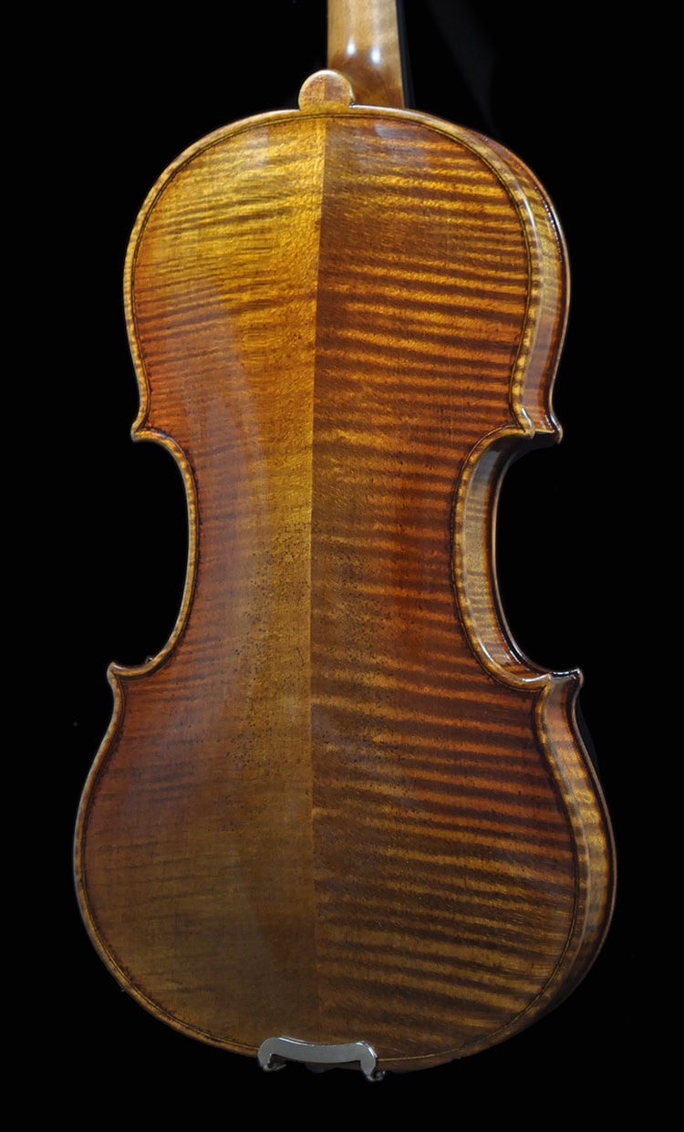 • Classic Guarneri antique golden brown varnish, French polished.