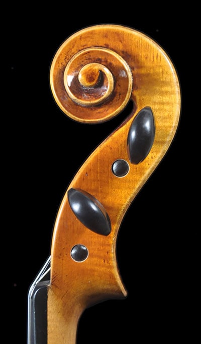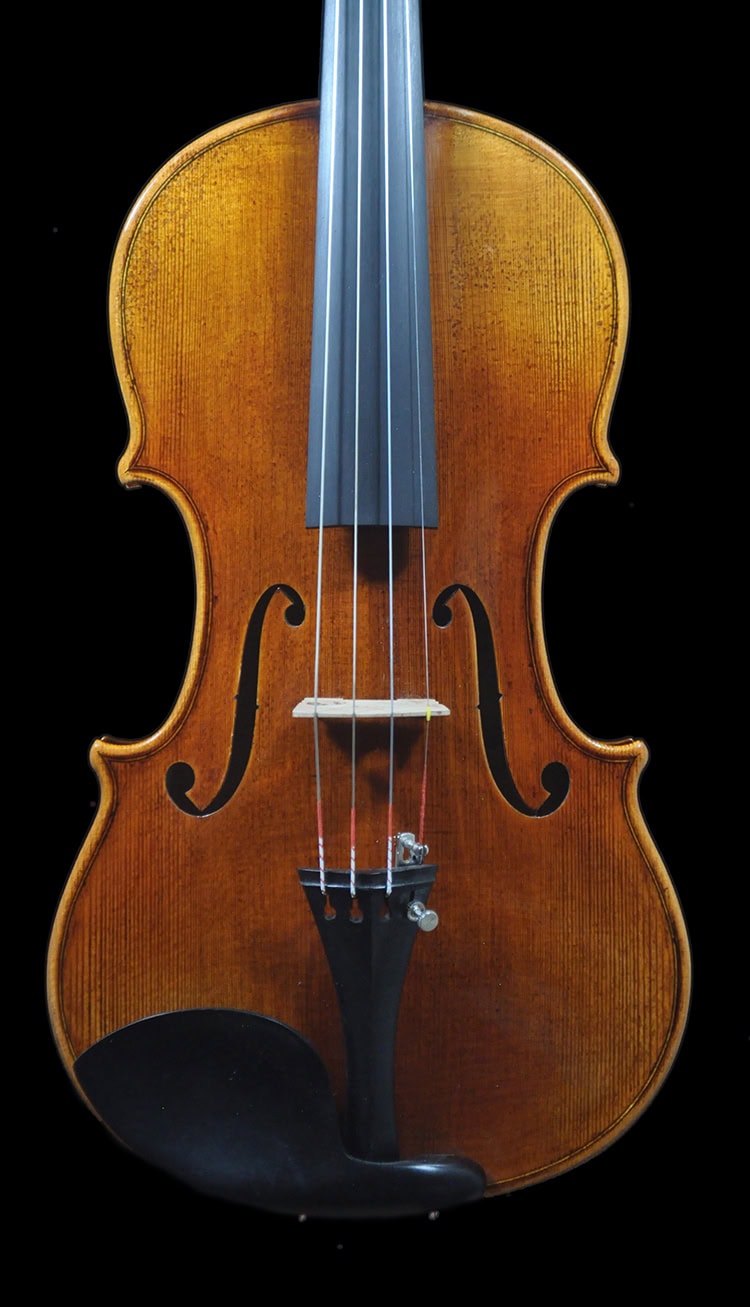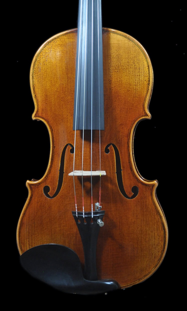 • Classic Guarneri antique golden brown varnish, French polished.