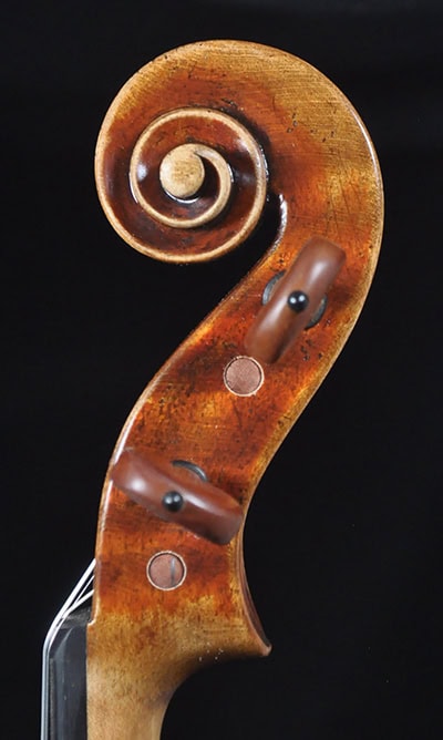 Deep, rounded, booming tone that sings with great depth. Rich ringing in mid range, strong projection that speaks with clear definition. Focused brilliant E string with great sustain, sonorous and projective tone as the audio clip shows, big sounding violin that can easily fill the hall. The perfect instrument for players looking for a loud soloist type Guarneri with thick and rich tonal character.