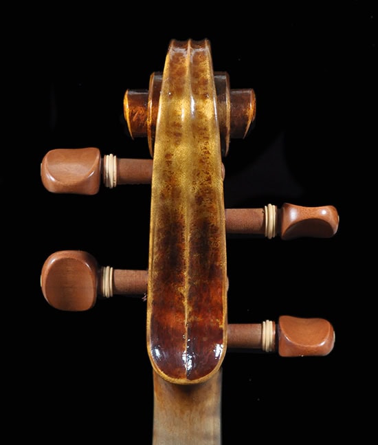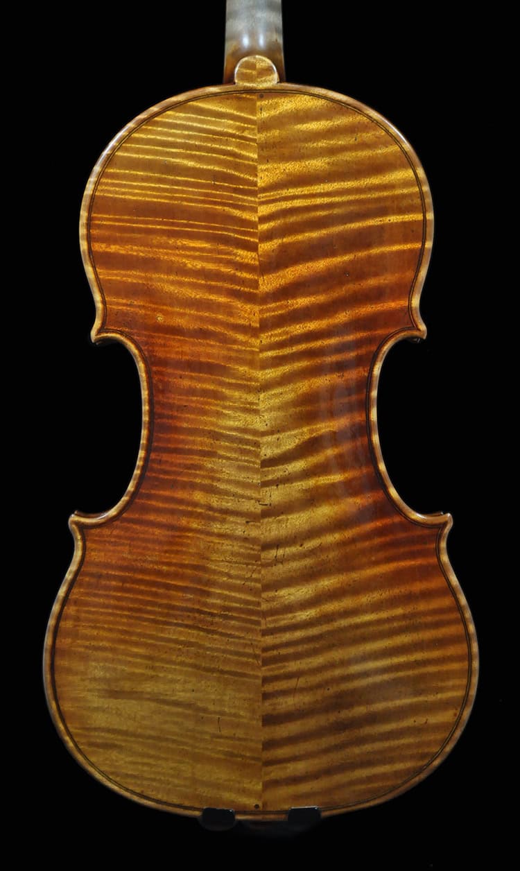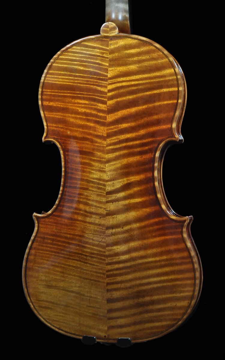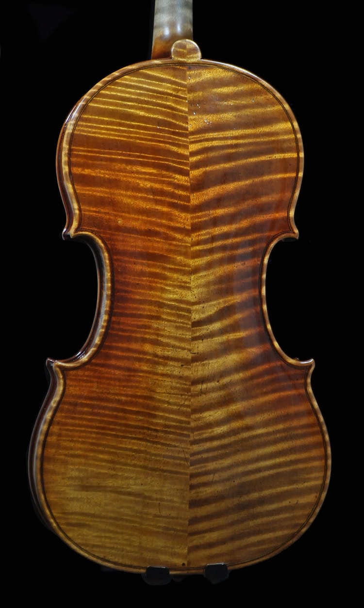 An exact copied “Cannone” Guarneri with warm,deep and powerful tone! Exquisite antique appearance that matches the “aging” voice with total modern playability. Featuring top grade European spruce and exquisite ascending flame maple that attributes to the original. Highly collectable for serious musicians and “Guarneri” lovers!