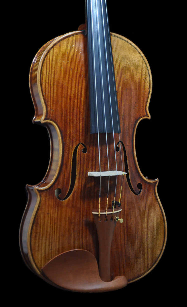 An exact copied “Cannone” Guarneri with warm, rich, and deep powerful tone! Exquisite antique appearance that matches the “aging” voice with total modern playability. Featuring top grade European sprue and exquisite ascending flame maple that attributes to the original. Highly collectable for serious musicians and “Guarneri” lovers!