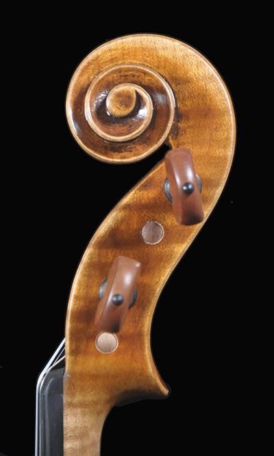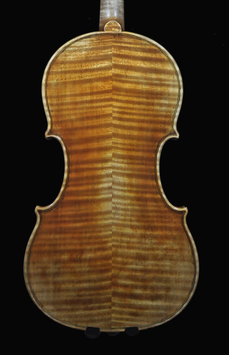 European spruce and maple with desired grain and flame, naturally seasoned over 12 yrs. Plate tuned for optimal resonance and response.