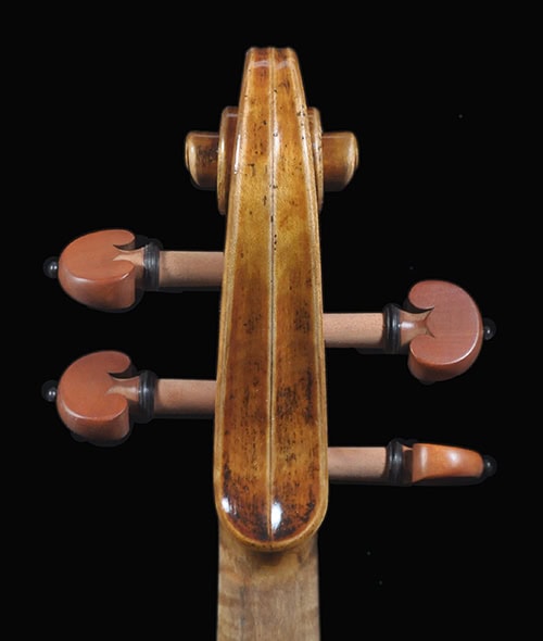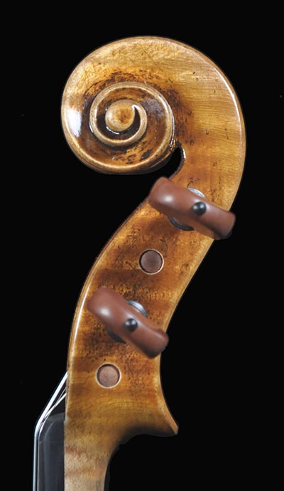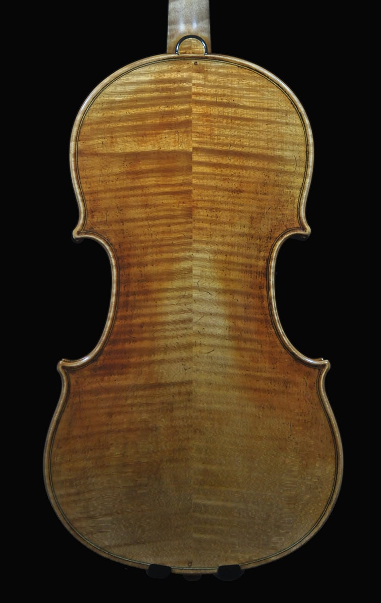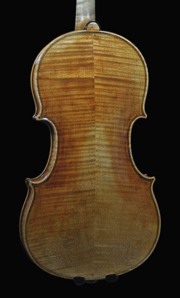 •European spruce and maple with desired grain and flame, naturally seasoned over 12 yrs. Plate tuned for optimal resonance and response.