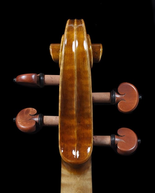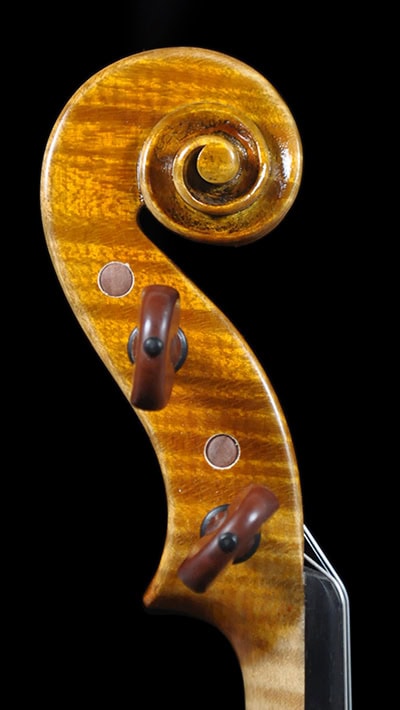 Deep, dark and extremely resonant voice and quick response. Warm and open G string, deep tone with bold dimension. Rich and ringing mid register that speaks with clarity, clean E string that’s not overly bright highly projective tone. A unique sounding Guarneri with a deep, vibrant, and open voice. Highly recommend for pro/advanced players and collectors