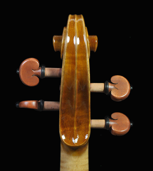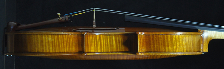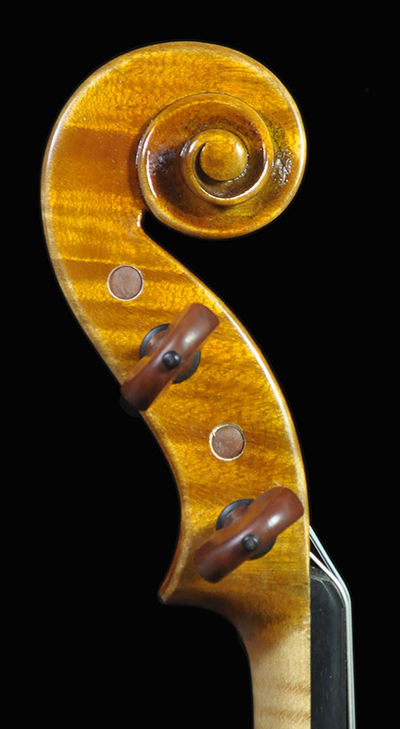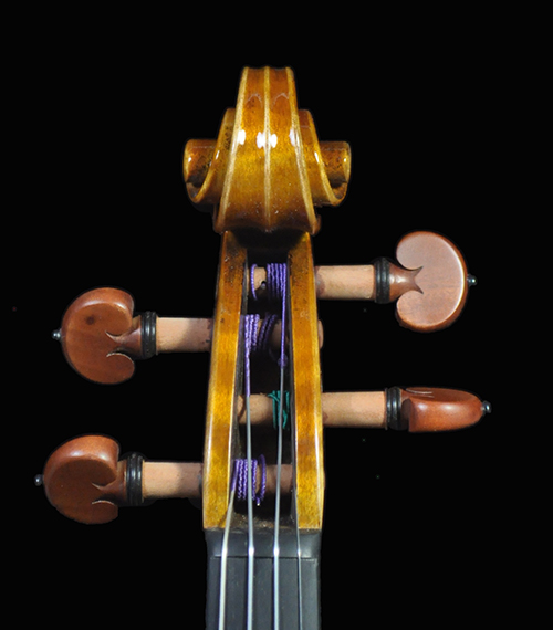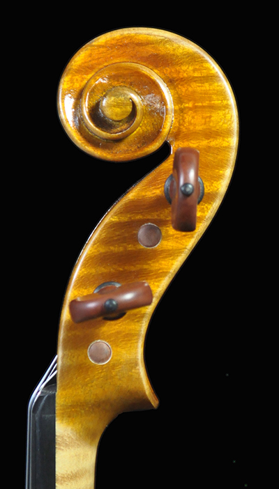 Deep, dark and extremely resonant voice and quick response. Warm and open G string, deep tone with bold dimension. Sweet and focused mid register that speaks with clarity, clean E string that’s not overly bright highly projective tone. A unique sounding Guarneri with a deep, vibrant, and open voice. Highly recommend for pro/advanced players and collectors