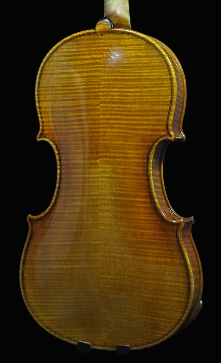 •European spruce and maple with desired grain and flame, naturally seasoned over 12 yrs. Density plate matching and pairing for optimal resonance.