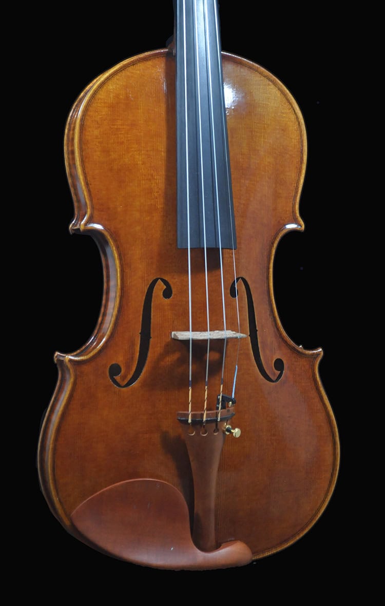• Premium package Set up: Larsen Cannone violin strings. Aubert deluxe bridge. Professionally cut bridge and sound post. Deluxe boxwood fitting.