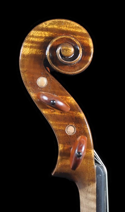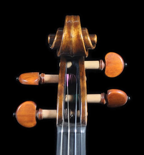 A sweet, projective “strad” sounding violin with singing, clear higher register and warm, mature tone . Ringing and vibrant, yet having the warm deep tone at ear, resonant for wide dynamic range with solid core tone that takes great bow pressure. A projective strad that sings with sweetness and clarity, while having the depth and fullness than most strad pattern lacks. 354 mm body length with original f hole and placement, to preserve the original tonality to be well suited for modern playability.