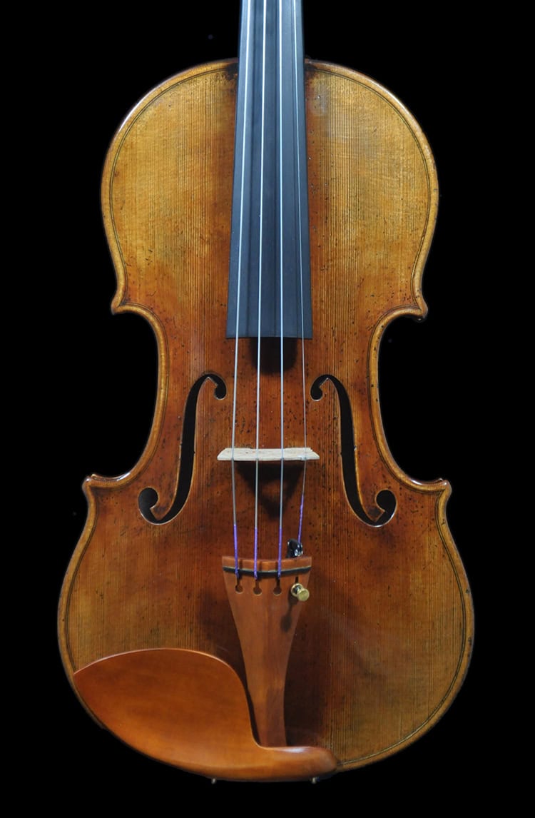 A total professional level instrument crafted by our award winning luthier Wayne Zhou ( 2021 VMAAI Gold Medalist, 2023 silver medalist ), competition level violin with finest workmanship and tonewood usage: 40 yrs old Italian spruce and 30 yrs old  Bosnian maple, based on 1715 “Titan strad with 354 mm body length, maker’s go-to strad pattern that he won the 2021 VMAAI gold medals. Orange reddish oil varnish with golden brown ground color, antique varnish pattern attributes to the original “Titan” strad, a total professional grade violin with highly sophisticated workmanship and tone!