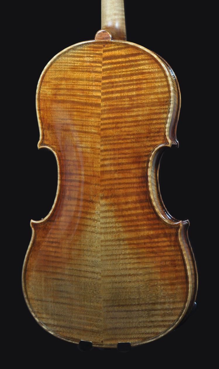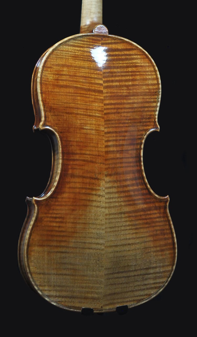 Sonorous, complex and deep tone. Having the “butter” sound as one would expect from an elite level instrument. Made after the 1744 “Ole Bull” Guarneri del Gesu, 25-30 yrs old Italian spruce and Bosnian maple, going through same wood treatment as our competition level violins. 353 mm body length that delivers super playability without being too small, punchy powerful projection with clear and rich tone color. Acoustically tuned plates as our award-winning violins for fast and dynamic response, that allows the player controlling vibrato at ease. A sonorous, singing violin can easily fill a recital hall. Excellent choice for violin performance major students or professionals in need of a serious sounding violin that can be used for both solo recital and orchestral works.