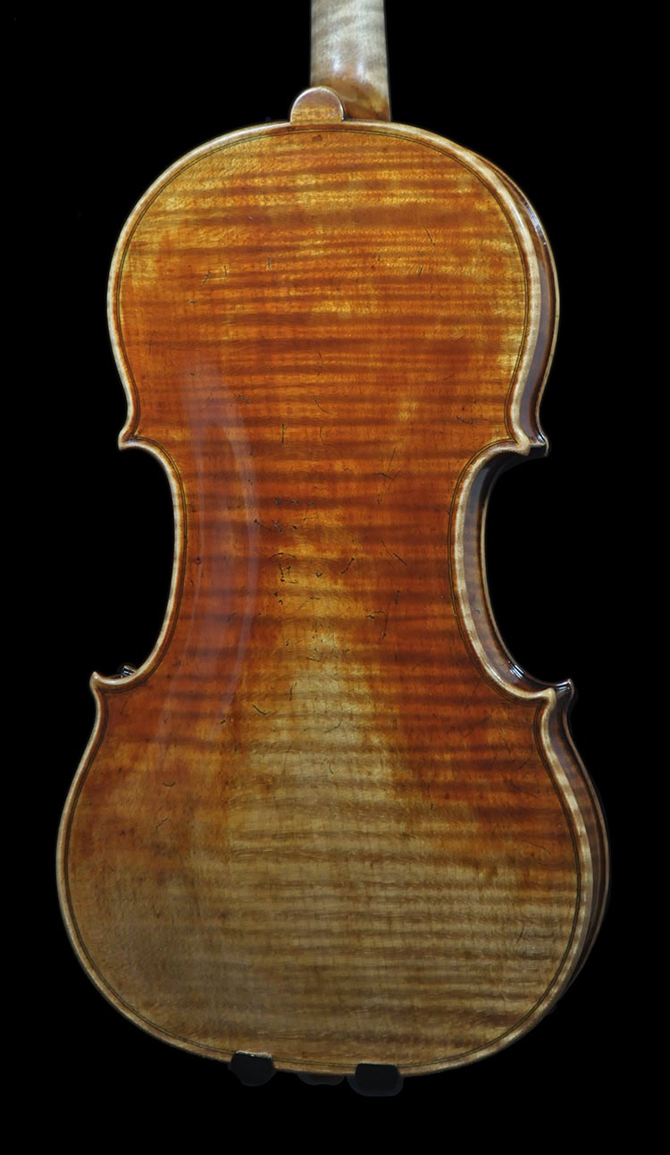 Warm and robust sound at ear, clear and projective in distance; resonant tone with thick texture as one would expect from an elite level instrument. Made after the 1742“Lord Wilton” Guarneri del Gesu, 25-30 yrs old Italian spruce and one piece Bosnian maple, going through same wood treatment as our competition level violins. 352 mm body length that delivers super playability without being too small, yer still delivering a punchy, deep projection with clear, ringing voice in distance. Acoustically tuned plates as our award-winning violins for fast and dynamic response, that allows the player controlling vibrato at ease. A sonorous, singing violin can easily fill a recital hall. Excellent choice for violin performance major students or professionals in need of a serious sounding violin that can be used for both solo recital and orchestral works.