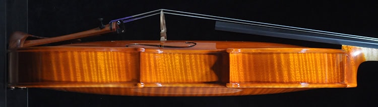 A classic “strad” sounding violin with rich, clear, warm tonal character and excellent projection that can be for professional usage. Rich warm voice but not overly dark in lower register, superb vibrant open tone so one can feel the resonance from the body instantly, soft resistance on the strings with depth, that can handle various bow stroke efficiently. Open, warn, lush voice at the ear, with a clear penetrating tone in distance.A sonorous, singing violin can easily fill a recital hall. Excellent choice for violin performance major students or professionals in need of a serious sounding violin that can be used for both solo recital and orchestral works.