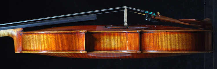 ** Premium hand applied oil varnish with antique pattern attributes to the original “Cannone” del Gesu. Aubert deluxe bridge. Peter Infeld strings